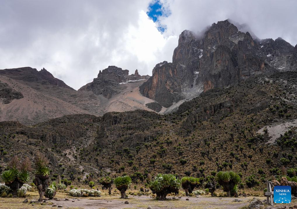 This photo taken on March 14, 2025 shows a view near the highest peak of the Mount Kenya, as seen from the Shiptons Camp at the Mount Kenya National Park in central Kenya. (Xinhua/Li Yahui)