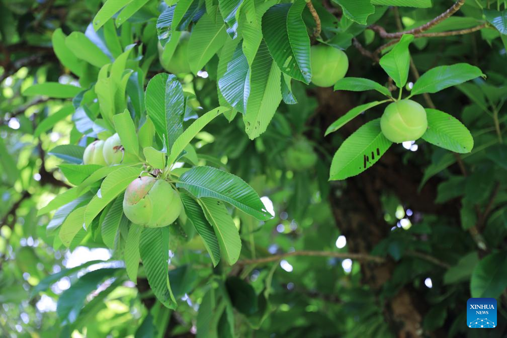 This photo taken on March 17, 2025 shows the elephant apples at the National Botanical Gardens in Victoria, capital of Seychelles. Seychelles, an archipelago country in the Indian Ocean, had a land area of about 460 square kilometers and a forest coverage rate of 73 percent in 2020, according to the official website of the United Nations.