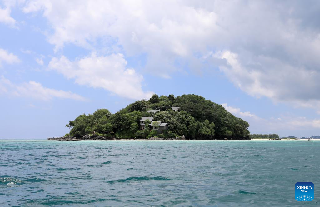 This photo taken on March 16, 2025 shows a forest-covered island in Seychelles. Seychelles, an archipelago country in the Indian Ocean, had a land area of about 460 square kilometers and a forest coverage rate of 73 percent in 2020, according to the official website of the United Nations.