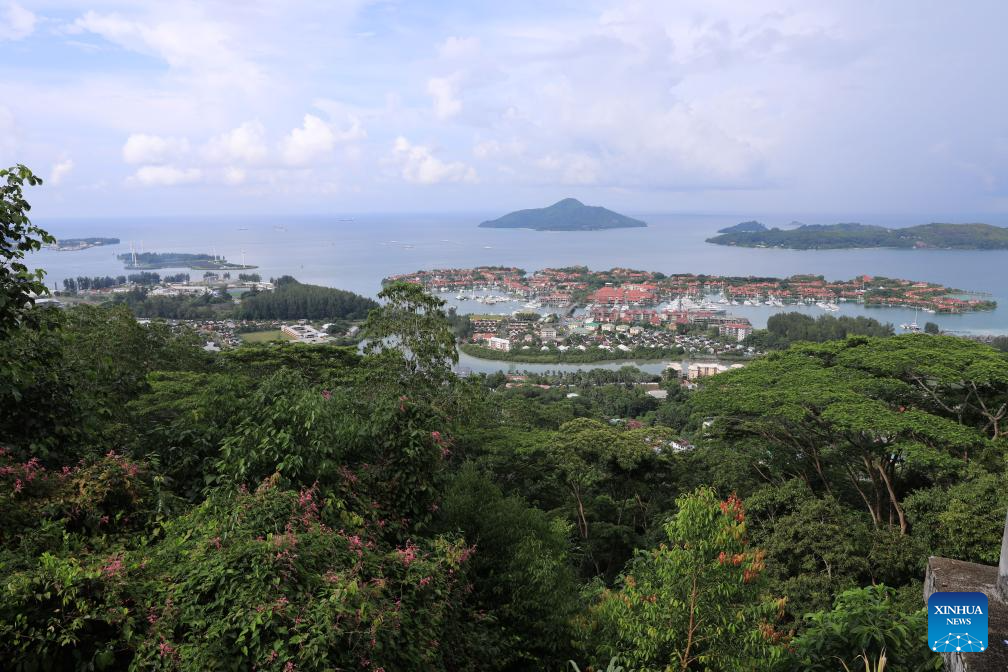 This photo taken on March 17, 2025 shows the forest-covered Mahe island (below) in Seychelles. Seychelles, an archipelago country in the Indian Ocean, had a land area of about 460 square kilometers and a forest coverage rate of 73 percent in 2020, according to the official website of the United Nations.