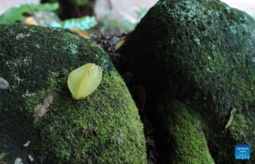A star fruit is pictured at the National Botanical Gardens in Victoria, capital of Seychelles, March 17, 2025. Seychelles, an archipelago country in the Indian Ocean, had a land area of about 460 square kilometers and a forest coverage rate of 73 percent in 2020, according to the official website of the United Nations.