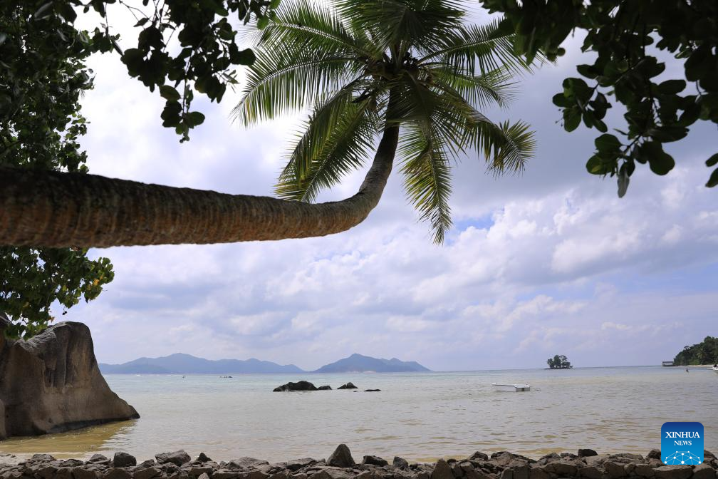 This photo taken on March 15, 2025 shows a coconut tree on La Digue Island, Seychelles. Seychelles, an archipelago country in the Indian Ocean, had a land area of about 460 square kilometers and a forest coverage rate of 73 percent in 2020, according to the official website of the United Nations.