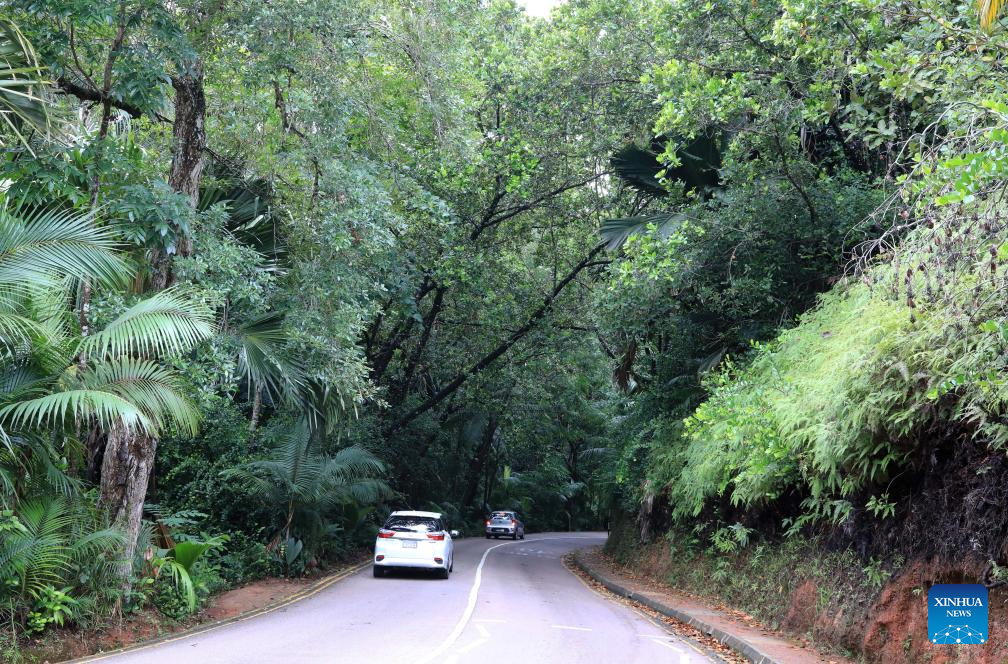 This photo taken on March 15, 2025 shows the forest on Praslin Island, Seychelles. Seychelles, an archipelago country in the Indian Ocean, had a land area of about 460 square kilometers and a forest coverage rate of 73 percent in 2020, according to the official website of the United Nations.