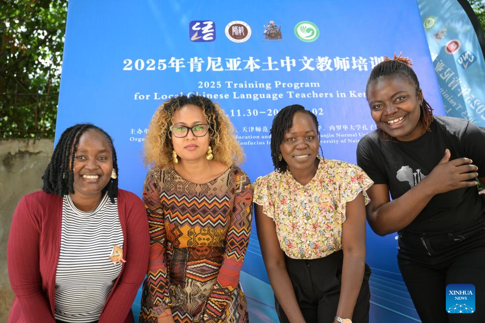 Alumni of the University of Nairobi's Confucius Institute pose for a photo during the launching ceremony of a training program for local Chinese language teachers in Nairobi, Kenya, on Nov. 30, 2025. A training program for local Chinese language teachers was launched in Nairobi, the capital of Kenya, on Sunday as part of efforts to promote Sino-Kenyan cultural ties.