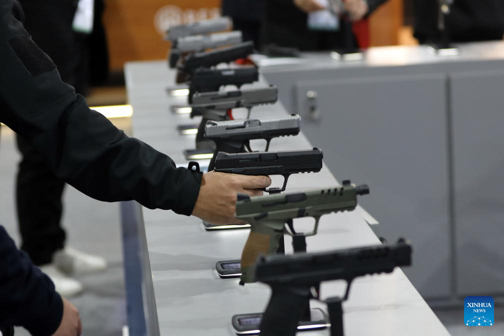 This photo taken on Dec. 1, 2025 shows pistols at the Egypt Defense Expo in Cairo, Egypt. (Xinhua/Ahmed Gomaa)
