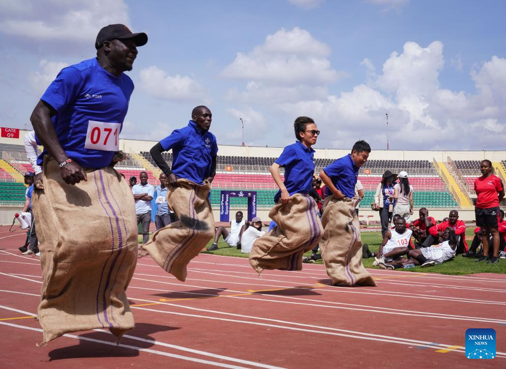 The day-long competition saw over 700 Chinese and Kenyan attendants from 19 Chinese companies who are members of the Kenya-China Economic and Trade Association (KCETA), featuring track and field events, as well as fun games. (Xinhua/Han Xu)