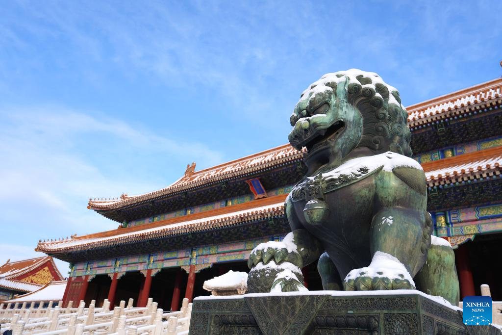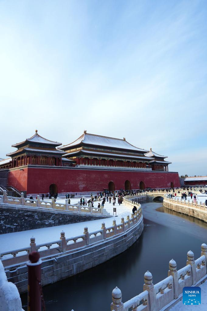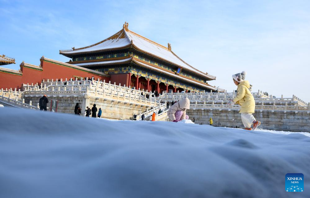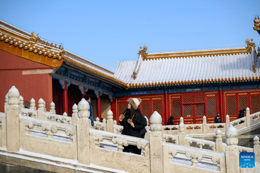 Tourists visit the Palace Museum after snowfall in Beijing, capital of China, Dec. 13, 2025. (Xinhua/Liu Bin)