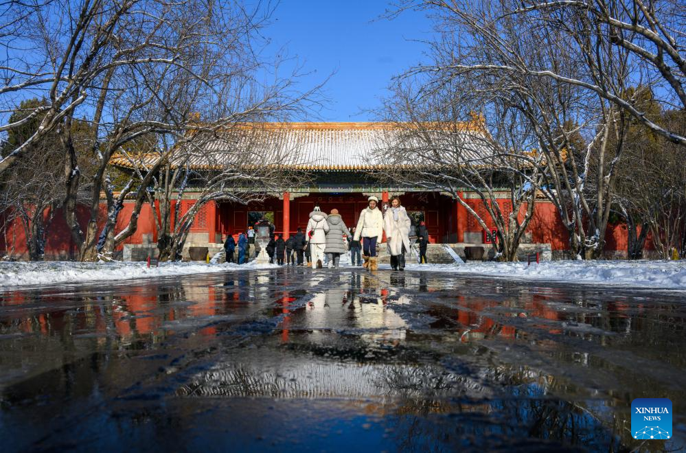 Tourists visit the Palace Museum after snowfall in Beijing, capital of China, Dec. 13, 2025. (Xinhua/Ma Xiaodong)
