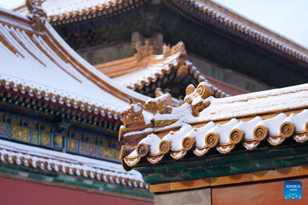 This photo taken on Dec. 13, 2025 shows a partial view of buildings of the Palace Museum after snowfall in Beijing, China. (Xinhua/Ma Xiaodong)