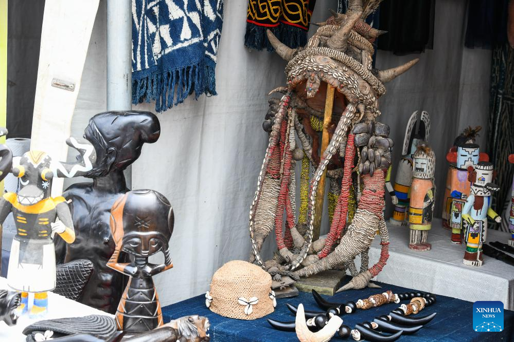 Traditional head decorations are displayed during a celebration for the World Day for African and Afrodescendant Culture in Yaounde, Cameroon, Jan. 24, 2026. The World Day for African and Afrodescendant Culture was designated by the UNESCO in 2019 and is observed every year on Jan. 24. (Xinhua/Kepseu)