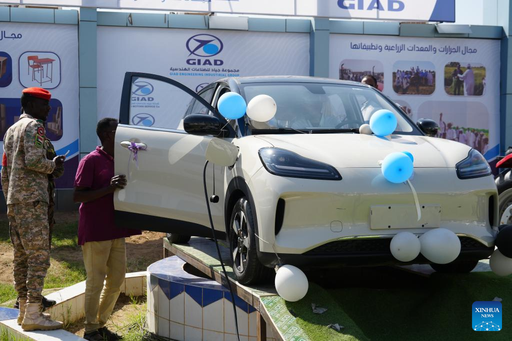 Visitors try out a Chinese electric car on display at the exhibition in Atbara, River Nile State, Sudan, Jan. 27, 2026. Atbara, a relatively stable city in northern Sudan's River Nile State, is hosting the "Made in River Nile" exhibition, which highlights Sudanese industry's resolve to aid economic recovery and revive national production, even amid the country's ongoing internal conflicts. (Photo by Fayez Elzaki/Xinhua)