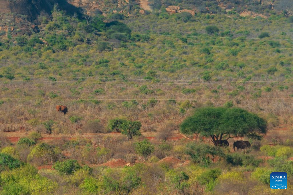 Elephants are pictured through the window aboard a train along the Mombasa-Nairobi railway at Tsavo East National Park in Taita-Taveta County, Kenya, Feb. 19, 2026. Stretching 472 km from the port city of Mombasa to the capital Nairobi in Kenya, the Chinese-built Mombasa-Nairobi Standard Gauge Railway (SGR) was launched on May 31, 2017. It is the first new railway built in Kenya since independence and a flagship project of China-Kenya cooperation under the Belt and Road Initiative. (Xinhua/Xie Jianfei)