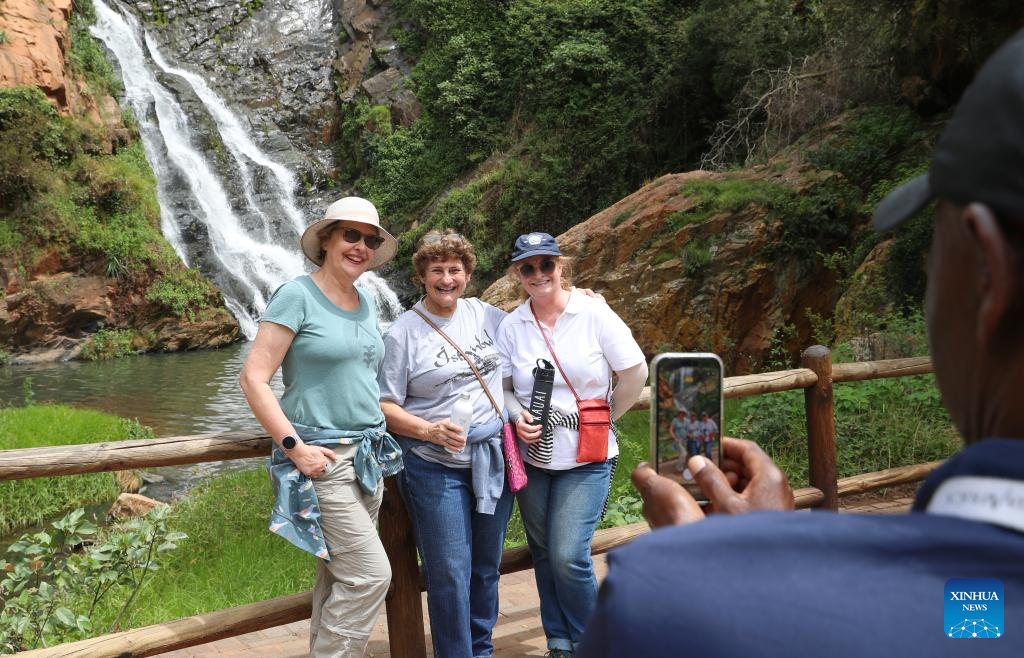 People pose for photos at the Walter Sisulu National Botanical Garden in Johannesburg, South Africa, March 13, 2026. South Africa is marking the 2026 National Gardens Week from March 9 to 15. (Xinhua/Chen Wei)