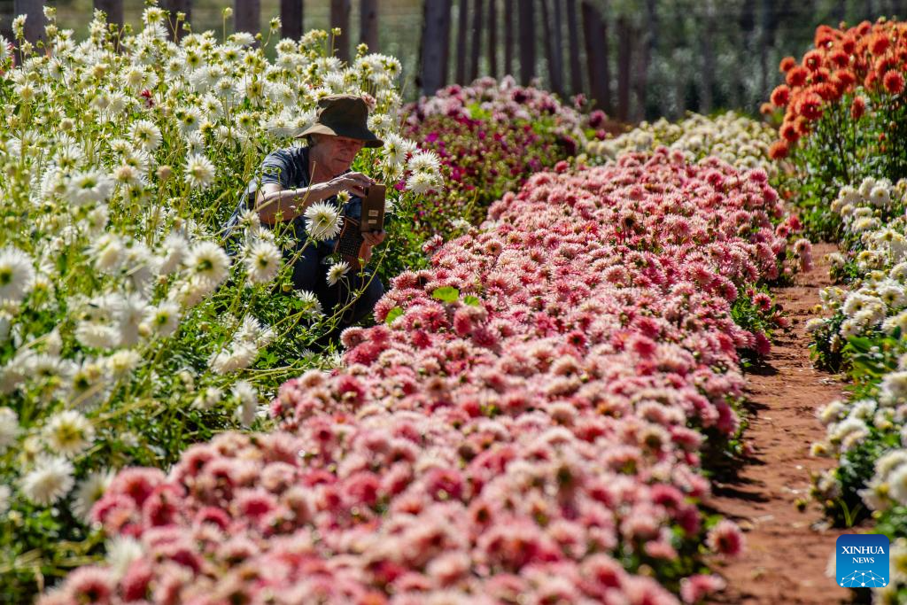 A visitor takes photos of flowers at the Dahlia Festival in Magaliesburg, South Africa, March 29, 2026.