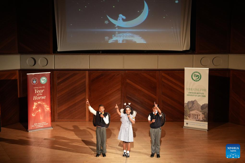 Contestants perform at the fifth Chinese Singing Competition of the Confucius Institute at the University of Cape Town, in Cape Town, South Africa, April 18, 2026. Young students from across Cape Town, South Africa's legislative capital, brought energy and enthusiasm to a celebration of Chinese culture on Saturday, as the Confucius Institute at the University of Cape Town (CIUCT) staged its fifth Chinese Singing Competition, highlighting the idea that music can serve as a bridge between cultures.(Xinhua/Wang Lei)