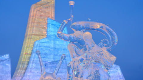 Plant-dyed ice sculptures bring color to Harbin Ice and Snow World