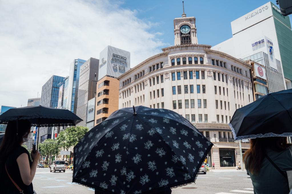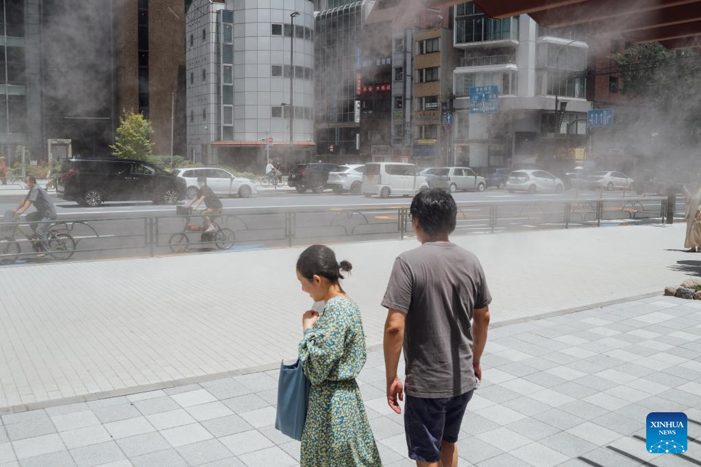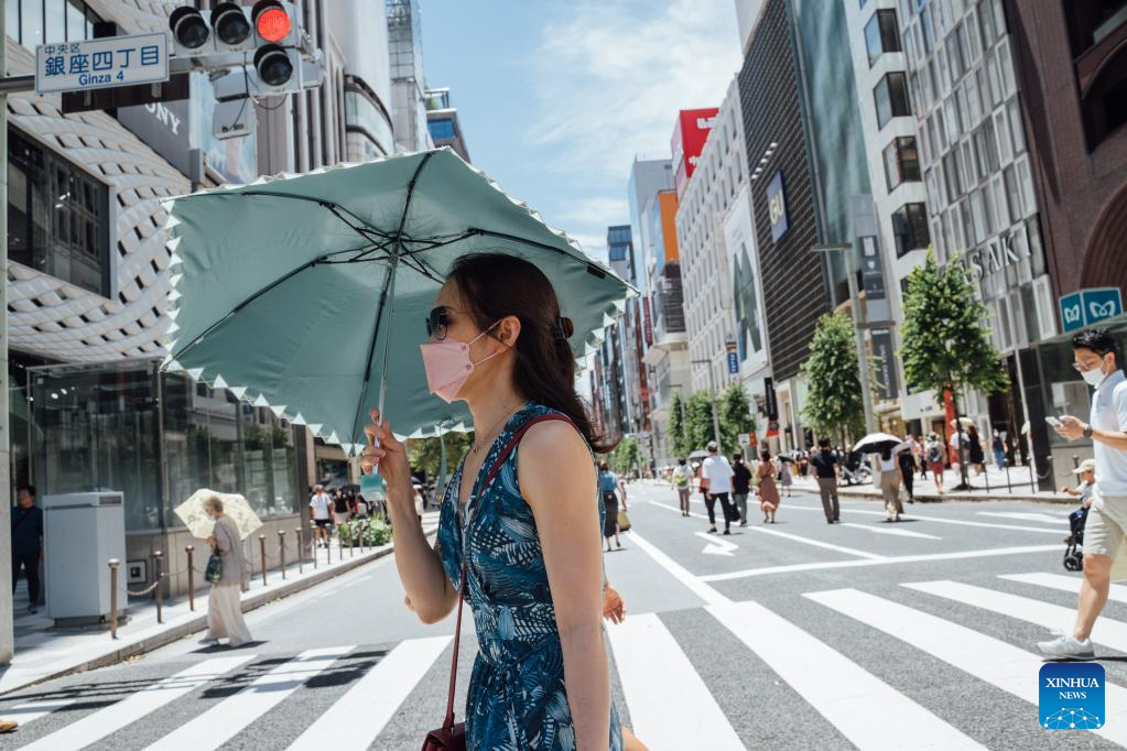 People walk on a street as heatwave hits Tokyo, Japan, June 26, 2022. (Xinhua/Zhang Xiaoyu)