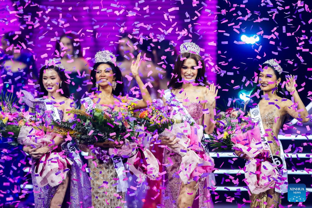 Winners wave to audience during the grand coronation night of the Binibining Pilipinas beauty pageant 2023 in Quezon City, the Philippines, May 28, 2023. Forty contestants vied for the Binibining Pilipinas beauty pageant 2023. (Xinhua/ROUELLE UMALI)
