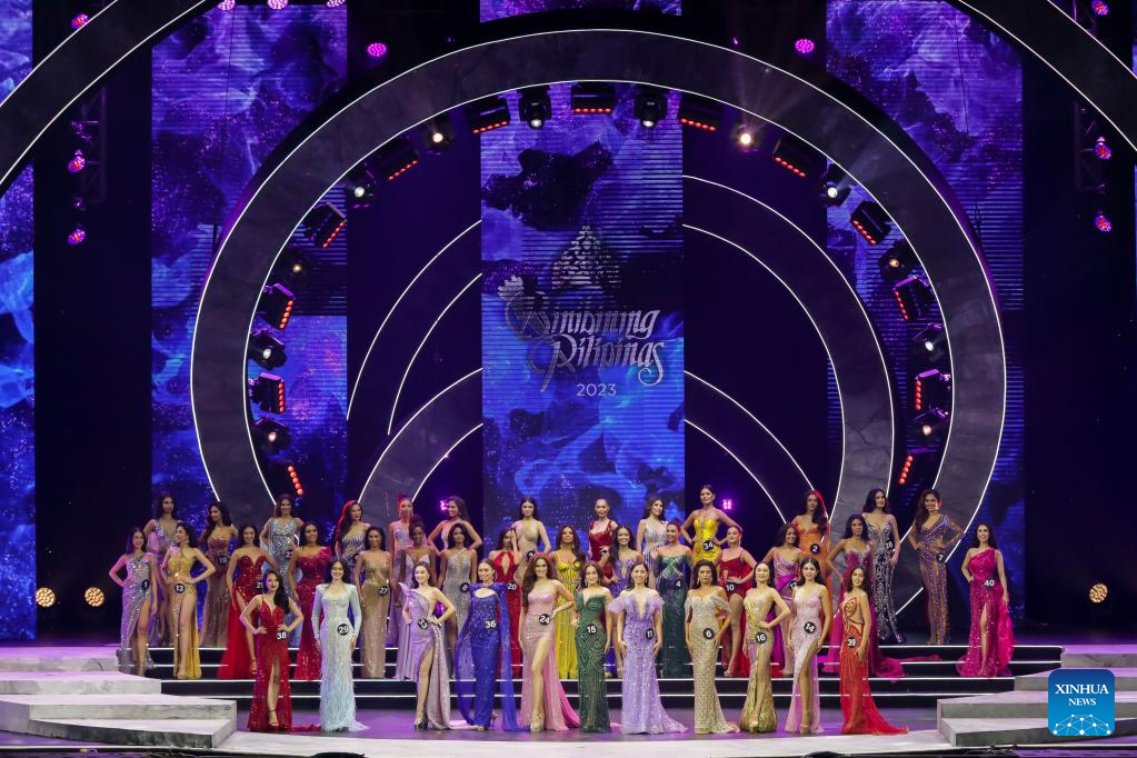 Contestants for the Binibining Pilipinas beauty pageant 2023 are seen on stage during their grand coronation night in Quezon City, the Philippines, May 28, 2023. Forty contestants vied for the Binibining Pilipinas beauty pageant 2023. (Xinhua/ROUELLE UMALI)