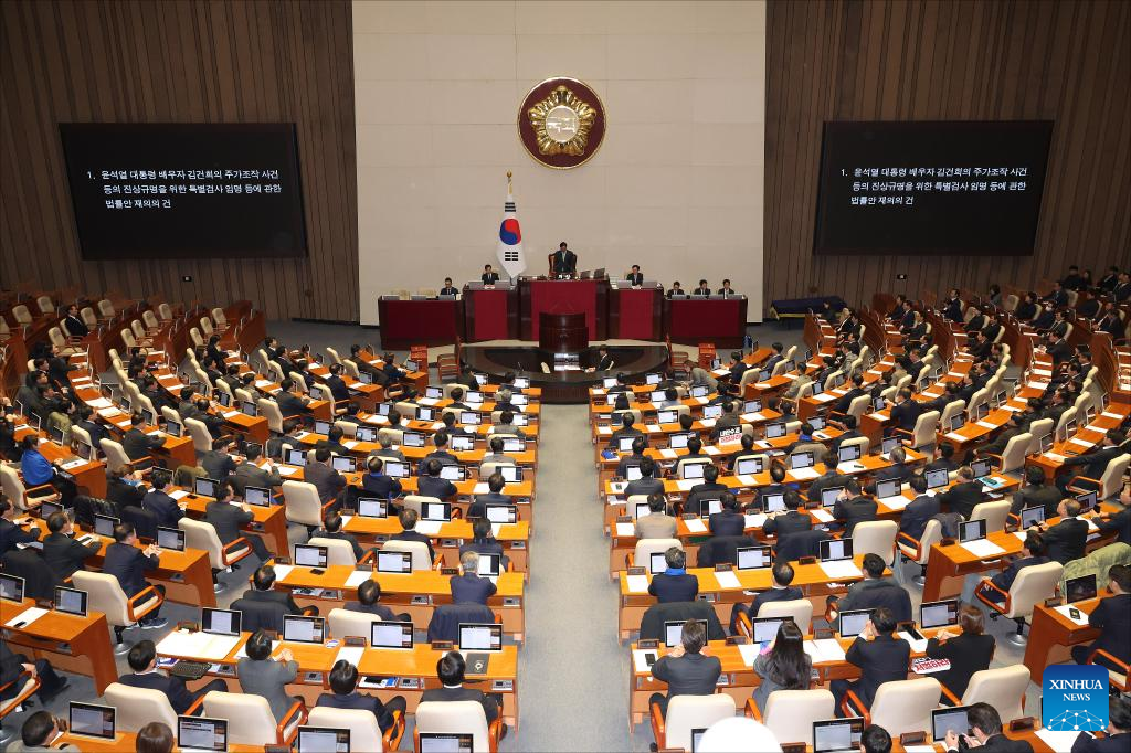 SEOUL, Dec. 7 (Xinhua) -- South Korea's parliament is expected to vote down President Yoon Suk-yeol's impeachment motion on lack of quorum, TV footage showed Saturday.