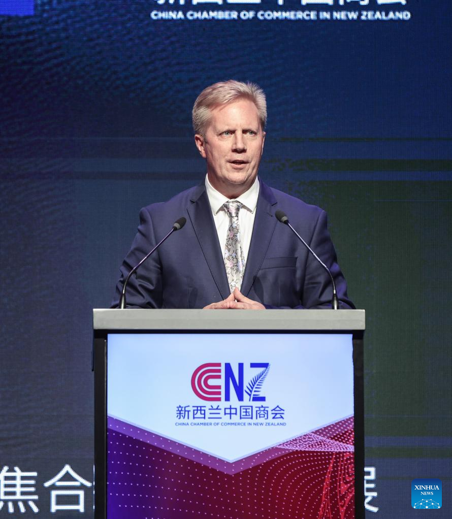New Zealand Minister for Trade and Agriculture Todd McClay speaks at the "Vision 2025" business event held by the China Chamber of Commerce in New Zealand, in Auckland, New Zealand, Dec. 6, 2024. (Xinhua/Long Lei)
