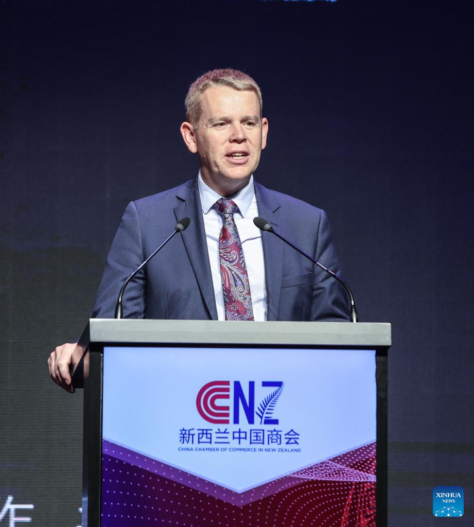 Former New Zealand Prime Minister Chris Hipkins speaks at the "Vision 2025" business event held by the China Chamber of Commerce in New Zealand, in Auckland, New Zealand, Dec. 6, 2024. (Xinhua/Long Lei)