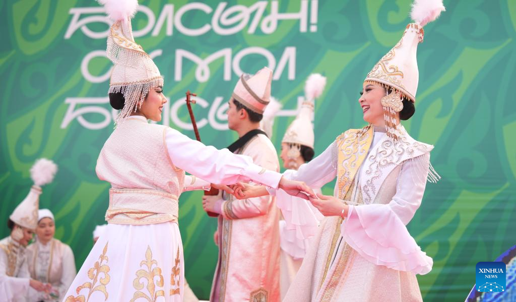 An actress performs on a square to celebrate the Nauryz festival in Astana, Kazakhstan, on March 21, 2025. People in Kazakhstan are enjoying a five-day holiday to celebrate Nauryz, the traditional New Year, from March 21 to 25. In Kazakh, "Nauryz" means "bidding farewell to the old and welcoming the new." (Photo by Kalizhan Ospanov/Xinhua)