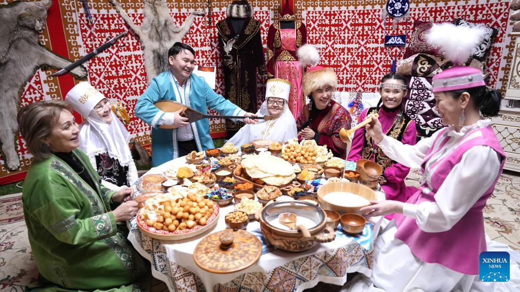 Citizens enjoy specialty dishes to celebrate the Nauryz festival in Astana, Kazakhstan, on March 21, 2025. People in Kazakhstan are enjoying a five-day holiday to celebrate Nauryz, the traditional New Year, from March 21 to 25. In Kazakh, "Nauryz" means "bidding farewell to the old and welcoming the new." (Photo by Kalizhan Ospanov/Xinhua)