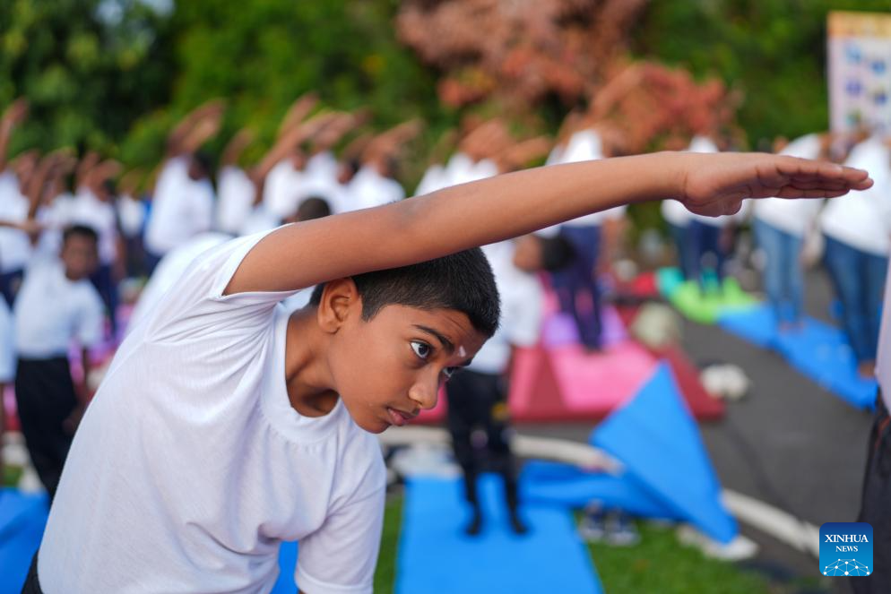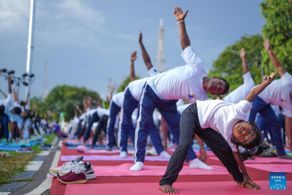 People take part in a mass yoga session at Independence Square in Colombo, Sri Lanka, on June 21, 2025, the International Day of Yoga. (Photo by Thilina Kaluthotage/Xinhua)