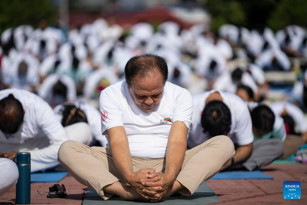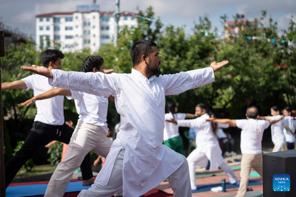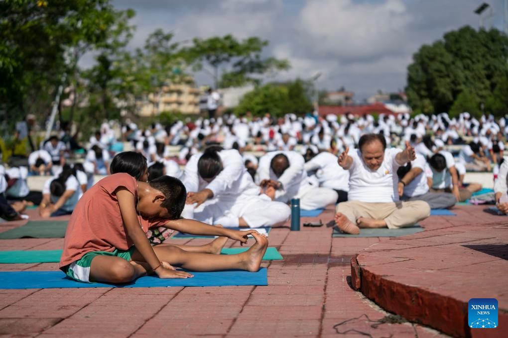 Participants take part in a yoga session to celebrate the International Day of Yoga in Kathmandu, Nepal, June 21, 2025. (Photo by Hari Maharjan/Xinhua)