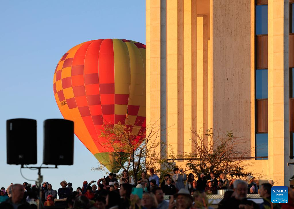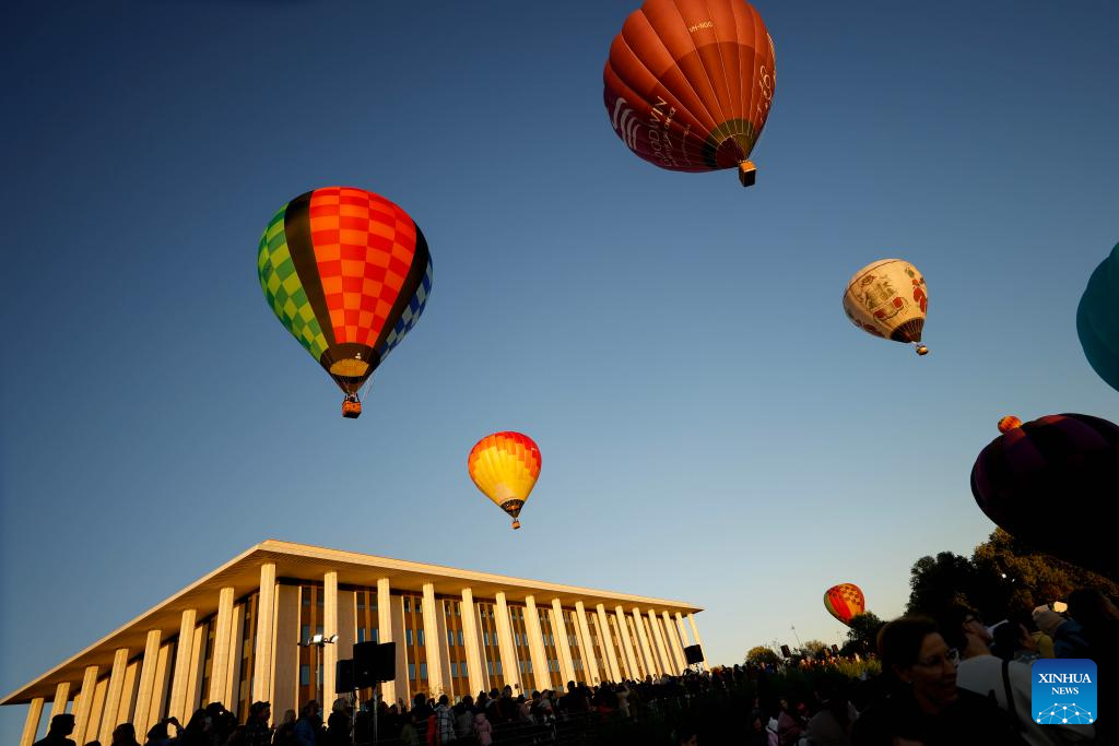 A hot air balloon takes off during the Canberra Balloon Spectacular in Canberra, Australia, March 14, 2026.