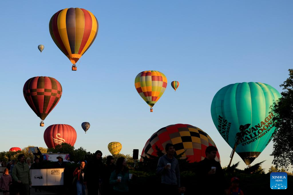 Hot air balloons fly in the sky during the Canberra Balloon Spectacular in Canberra, Australia, March 14, 2026.