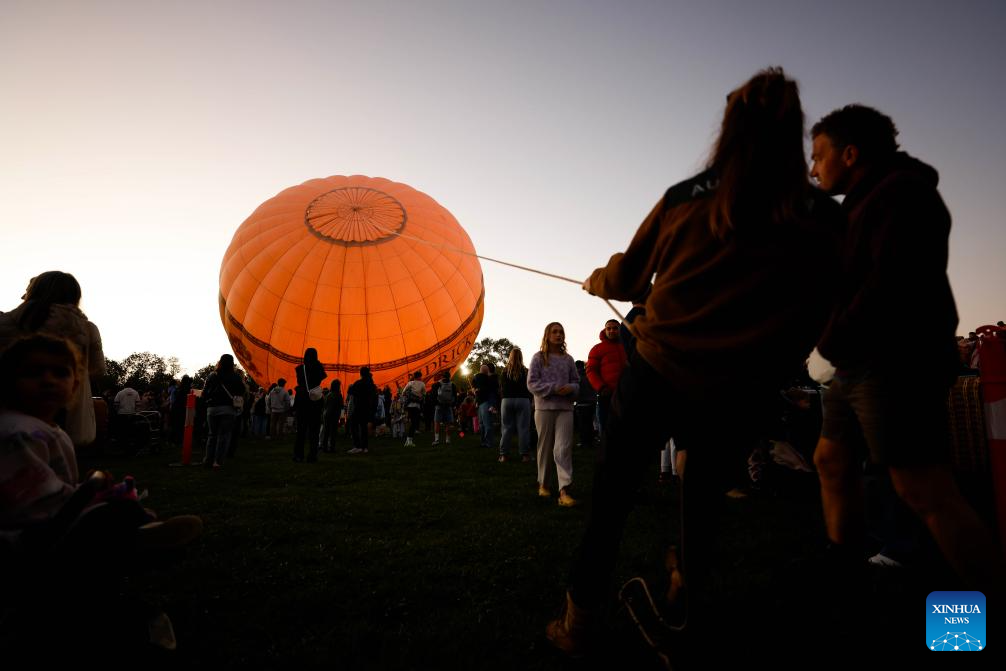 People launch a hot air balloon during the Canberra Balloon Spectacular in Canberra, Australia, March 14, 2026.