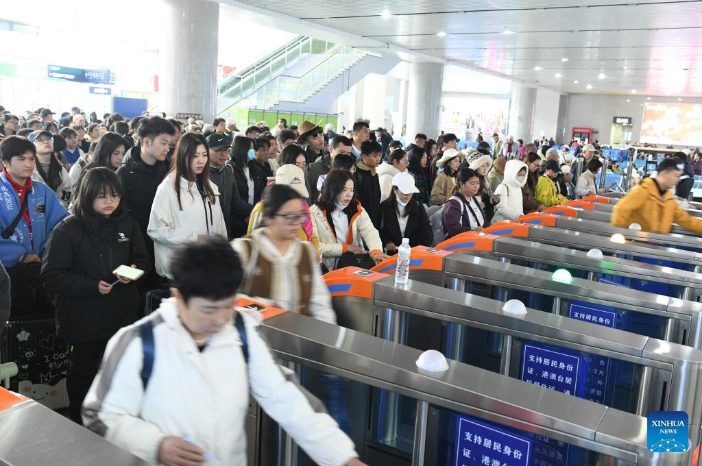 passengers enter the waiting hall of Nanjing South Railway Station in Nanjing, east China's Jiangsu Province, March 13, 2026. The 2026 Spring Festival travel rush comes to an end on Friday. (Photo by Du Yi/Xinhua)