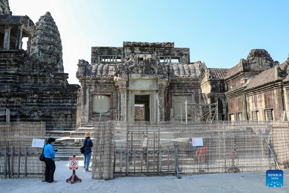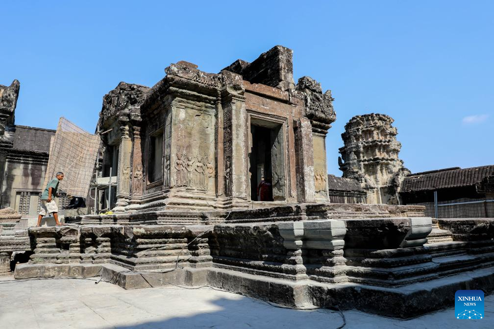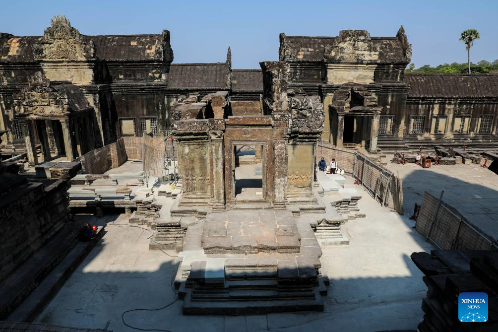 PHNOM PENH, April 6 (Xinhua) -- Archaeologists had successfully completed the restoration of a northern library located on the second level of the iconic Angkor Wat in Cambodia's Angkor Archaeological Park, said an APSARA National Authority (ANA) news release on Monday.