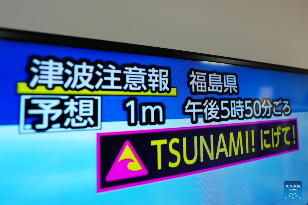 TOKYO, April 20 (Xinhua) -- Tsunami waves have been observed off Iwate and Aomori prefectures in the Pacific Ocean after a 7.5-magnitude earthquake struck off the Sanriku coast in northeastern Japan on Monday afternoon.