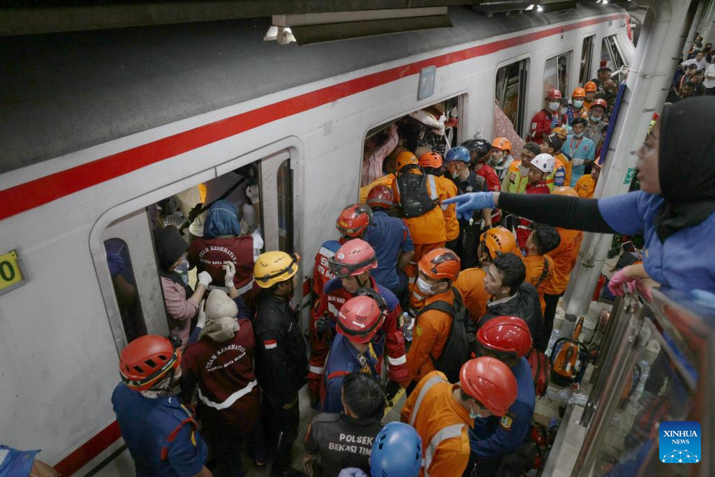 Rescuers work at the train accident site in Bekasi, Indonesia, April 28, 2026. (Xinhua/Veri Sanovri)