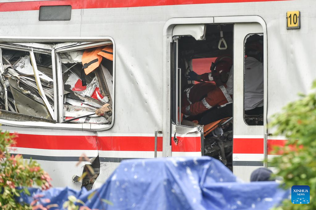 JAKARTA, April 28 (Xinhua) -- The death toll from a collision between two trains in Bekasi, West Java, Indonesia, has risen to seven, with 81 people injured, Anne Purba, a communications officer from the train operator KAI, said on Tuesday morning.