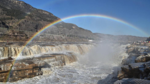 Double rainbow seen over Hukou Waterfall in Jixian, Shanxi