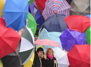 Sculpture made of umbrellas in central London