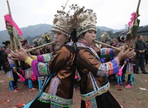Joyful reed fluting echoes in Miao village