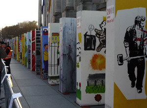 Giant dominos form tribute to Berlin Wall's collapse