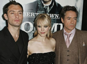 Cast members attend premiere of "Sherlock Holmes"