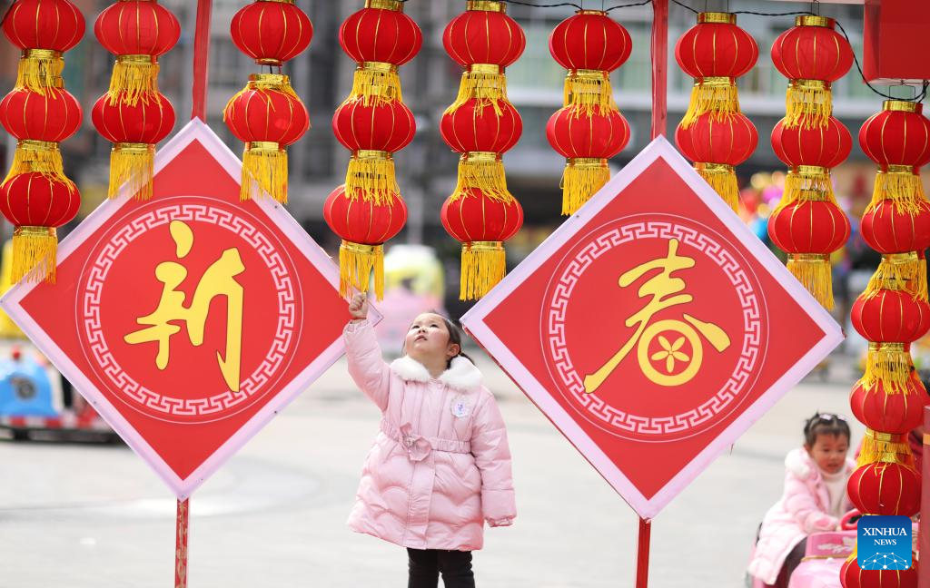 Children play at a square in Xishui County of Zunyi City, southwest China's Guizhou Province, Feb. 13, 2022. Various events are held across China to celebrate the upcoming Lantern Festival. (Photo by Yang Yang/Xinhua)