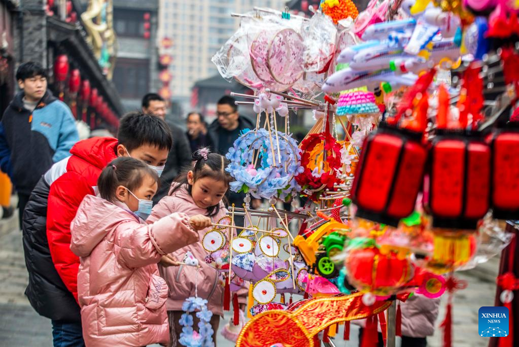 People visit Xinanli historical culture blocks in Nanjing, east China's Jiangsu Province, Feb. 13, 2022. Various events are held across China to celebrate the upcoming Lantern Festival. (Photo by Li Wenbao/Xinhua)