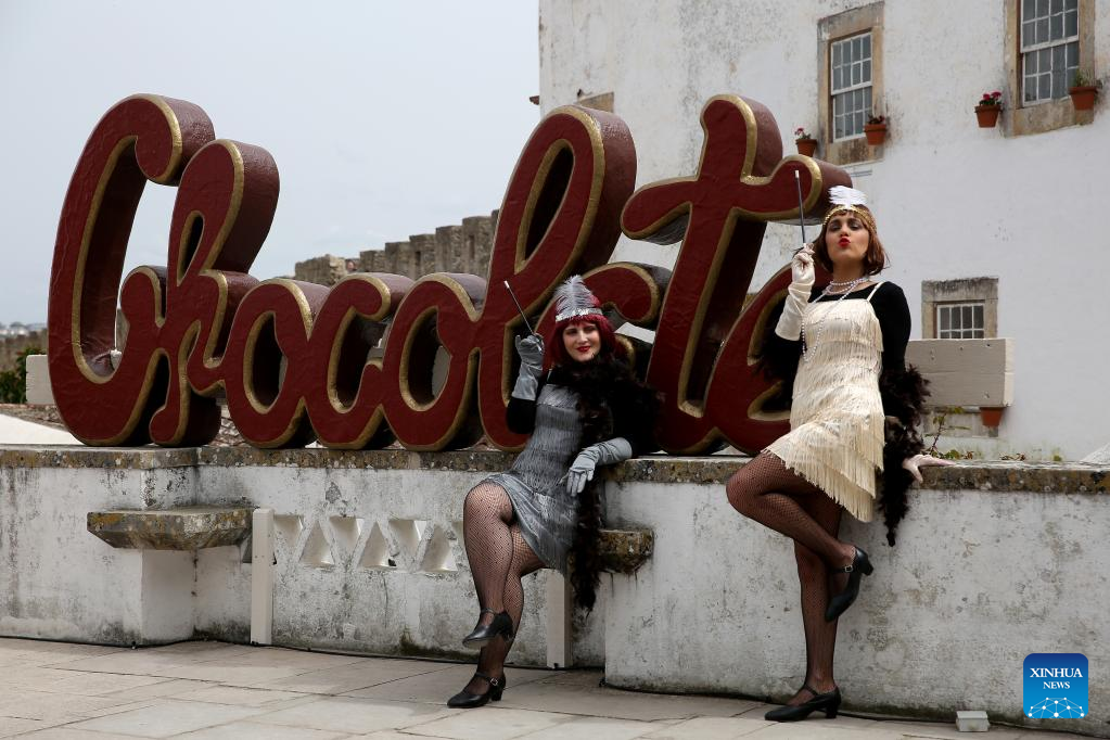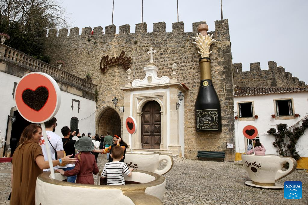 People take part in the 2022 Obidos International Chocolate Festival in Obidos, Portugal, on March 26, 2022. (Photo by Pedro Fiuza/Xinhua)