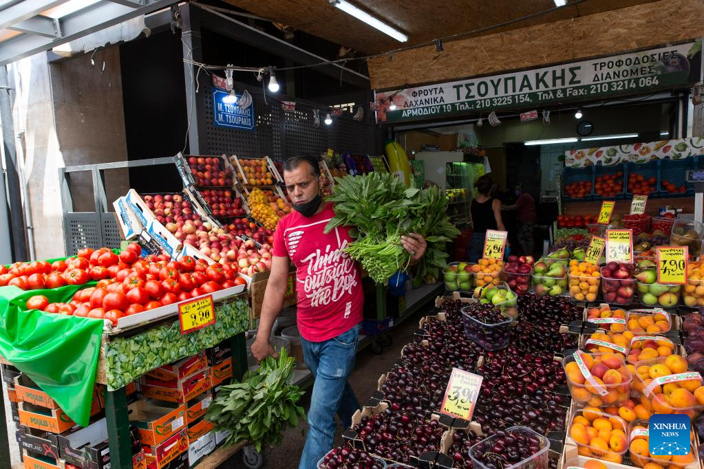 People shop at a market in Athens, Greece, on July 8, 2022. (Xinhua/Marios Lolos)