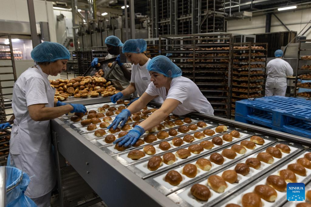 Staff members work at the Stergiou Family S.A. factory in Acharnes, a suburb of Athens, Greece, on Nov. 29, 2022. Facing soaring electricity and natural gas bills, Greek companies and households are turning to photovoltaics en masse this year to cope with the ongoing energy crisis.(Photo by Lefteris Partsalis/Xinhua)