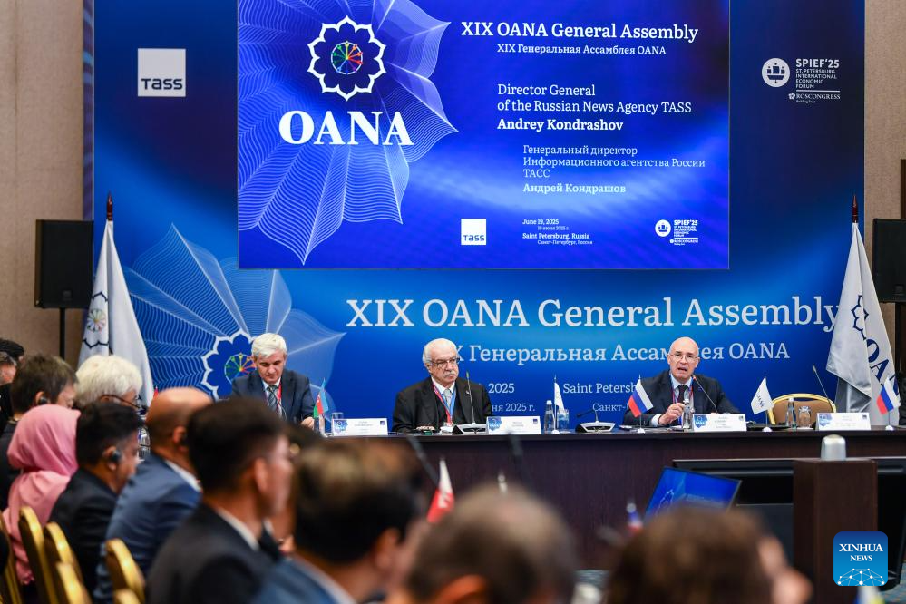 This photo shows a scene during the 19th General Assembly of the Organization of Asia-Pacific News Agencies (OANA) in St. Petersburg, Russia, June 19, 2025. The 19th General Assembly of the Organization of Asia-Pacific News Agencies (OANA) kicked off in St. Petersburg on Thursday.
