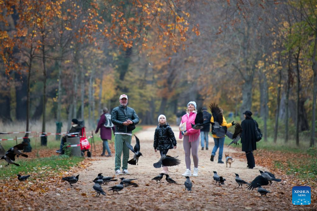 People enjoy themselves at the Charlottenburg Palace Garden in Berlin, Germany, Nov. 8, 2025. (Xinhua/Zhang Haofu)
